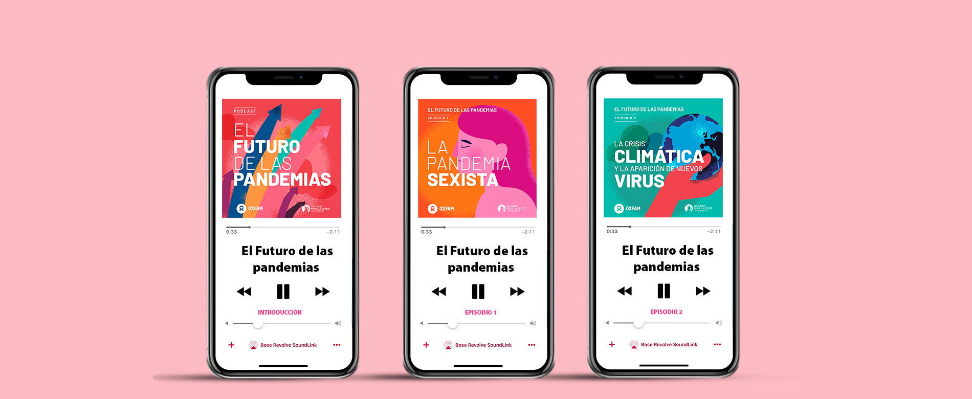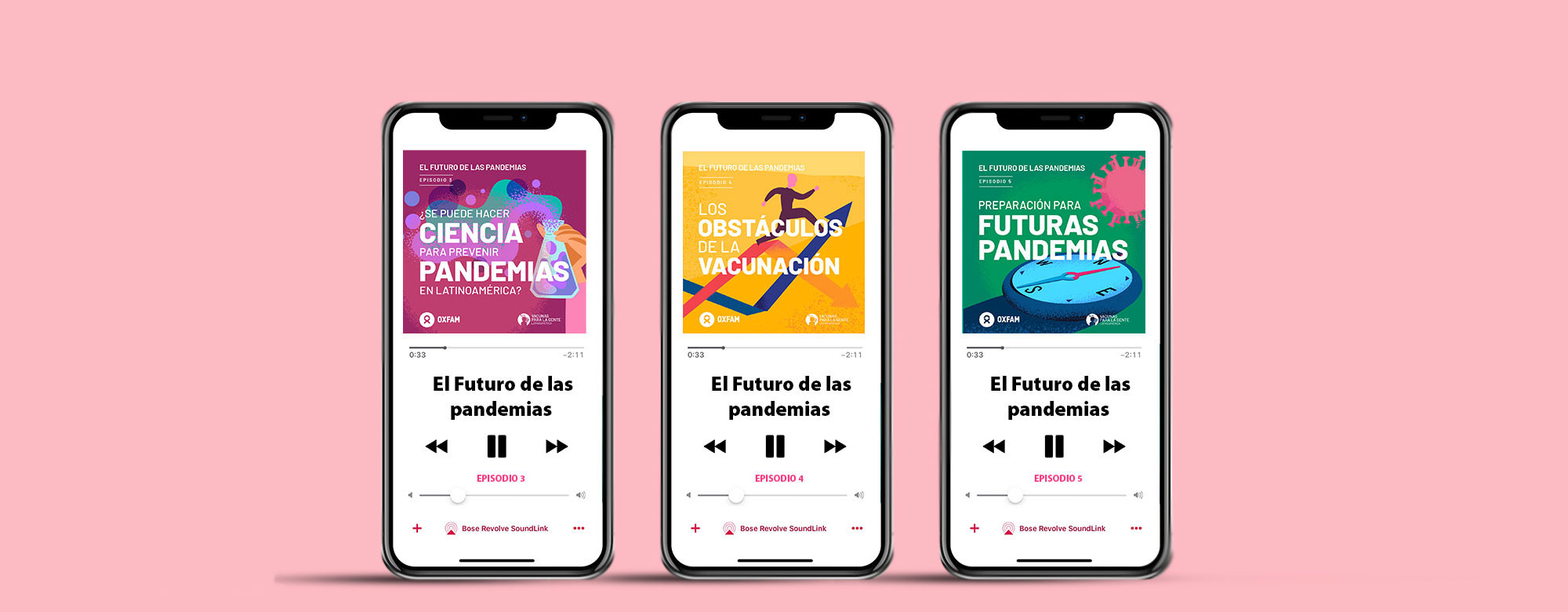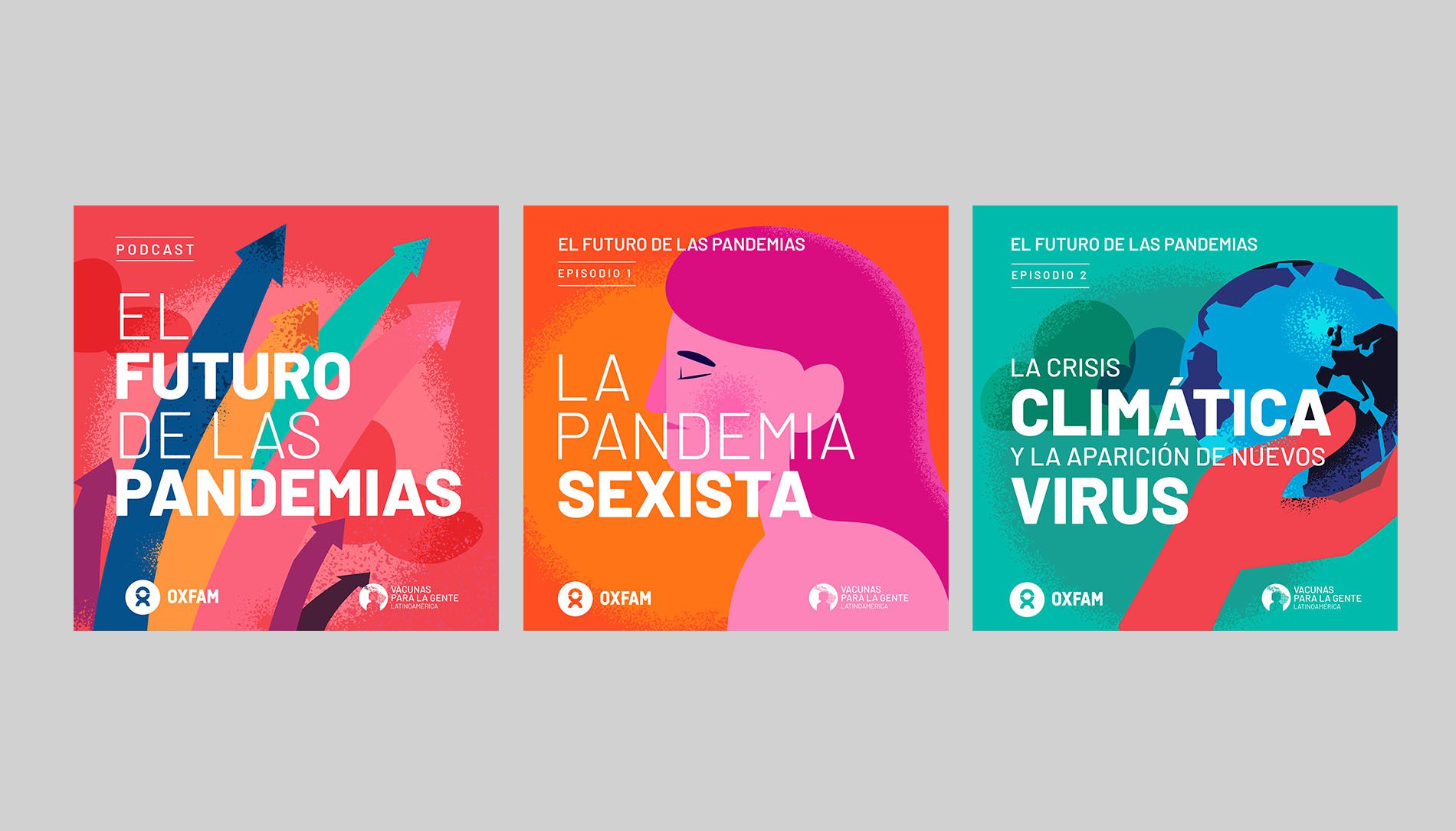 Imagen gráfica para el podcast “El futuro de las pandemias”, y video animación para su promoción. Video animaciones para dar a conocer el resultado del informe “ La deuda Humana”.